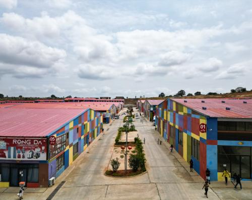 O Centro Comercial com mais de 600 lojas actualmente e com perspectiva para um total de 1200 lojas, tem um projecto três vezes maior em comparação com a Cidade da China e conta ainda com uma praça, no quadro do seu programa social, para as vendeiras que queiram deixar de realizar as suas actividades em locais não autorizados.
