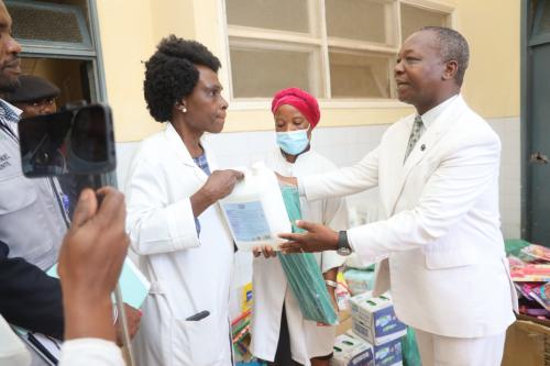 A entrega dos meios esteve a cargo de Sua Reverendíssima Bispo Auxiliar Teixeira Panzo, em representação de Sua Santidade Pai Mayamona, que na ocasião confortou os encarregados dos pacientes daquela área do Hospital Geral do Huambo.